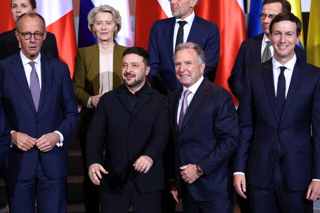 Канцлер ФРГ Фридрих Мерц, президент Украины Владимир Зеленский, спецпосланник президента США Стив Уиткофф, зять Дональда Трампа Джаред Кушнер и европейские лидеры позируют для фото. Берлин, 15 декабря 2025 года Аудиоверсию этого текста слушайте на «Радио Медуза» Переговоры Украины и США в Берлине. Итоги Переговоры делегаций Украины и США прошли в Б…