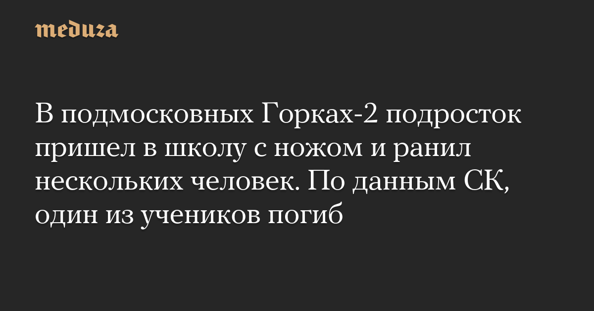 You can read this story in English here. В Одинцовском районе Подмосковья подросток пришел с ножом в школу и напал на учеников. Первыми об этом сообщили телеграм-каналы «База», 112, Mash, Shot и «Осторожно, новости». По их данным, нападение произошло в Успенской общеобразовательной школе в поселке Горки-2. Позже Следственный комитет России подтверд…