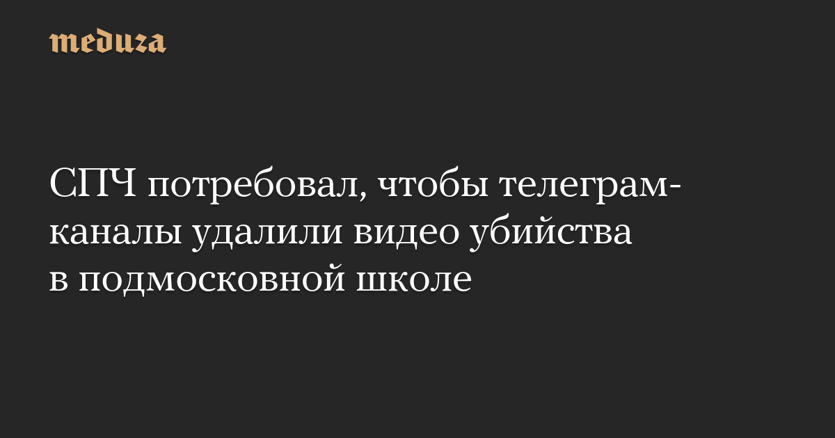 Совет по правам человека при президенте РФ потребовал, чтобы телеграм-каналы не распространяли — и чтобы удалили — фотографии и видео убийства, произошедшего 16 декабря в школе в Одинцовском районе Подмосковья. «Понятия этичности и гуманизма должно быть общими у всех людей, независимо от профессионального статуса. Авторы таких публикаций не задумыв…